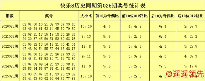 在第025期历史同期开奖中,后10为号码012路比为21:16:23,其中2路号码表现较热,1路号码走势较冷,去年同期后10位号码012路比为3:3:4,各路号码表现基本平衡,今年同期预计后10位1路较热,0路走冷,关注号码46、47、49、55、56、58、72、76、77、80。