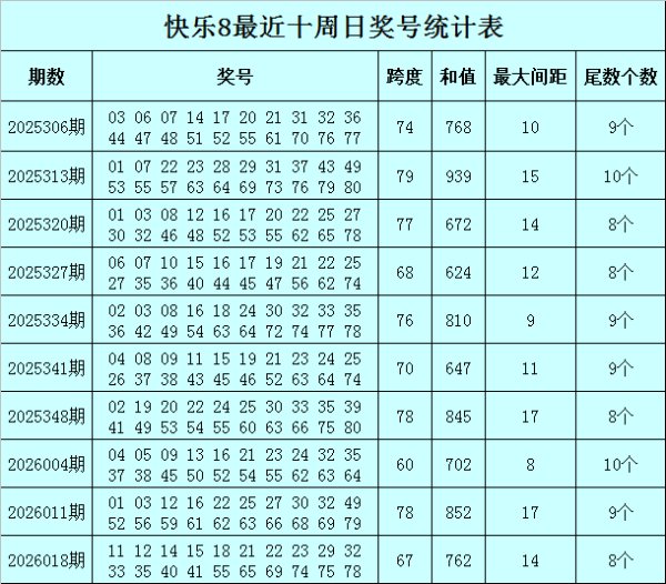 福彩快乐8第2026024期开奖回顾:0308161922252835363749505254575864677173,其中奖号首尾间距为70,和值为824,最...