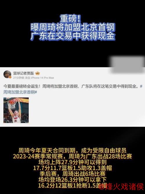 周琦转会北京首钢背后 CBA版“强强博弈”的新样本BWIN 当休赛期的流言终于落地 成为官宣时 周琦转会北京首钢 广东队通过交易获得现金回报 这笔操作立刻成为球...