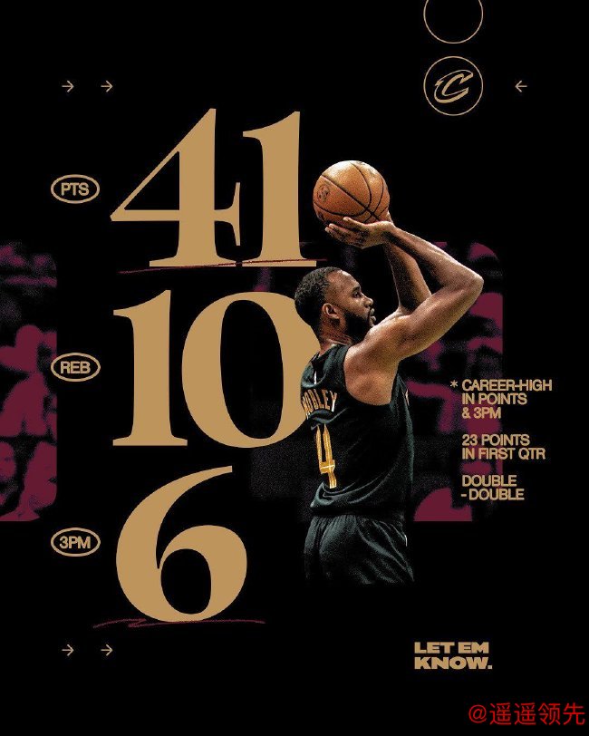 骑士(21-3):小莫布利41分10篮板3盖帽、米切尔18分8篮板8助攻、加兰18分5助攻、阿伦11分10篮板3助攻