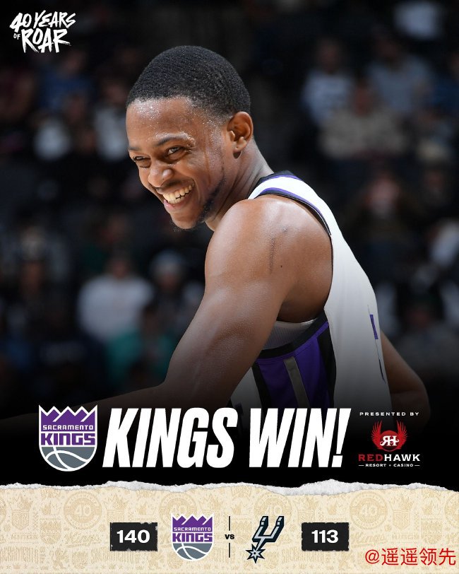 文班亚马继续缺阵,国王4人20+轻松取得大胜。